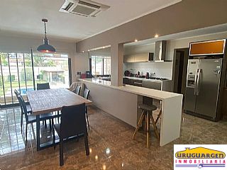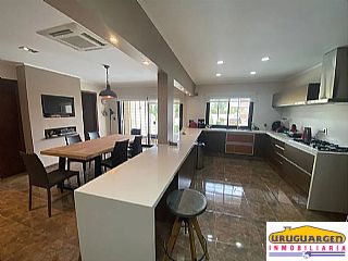 En la planta baja, que da al jardín trasero, encontramos una barbacoa con cocina completa, parrillero cerrado de acero inoxidable, trastero, gran espacio de barbacoa y baño completo. En dicha planta también se encuentra el espacio cerrado de garaje para 2 autos (con espacio para 2 más al aire libre). Saliendo al fondo nos encontramos con un gran jardín con una enorme piscina y otro parrillero, semi exterior (que cuenta también con mesada y pileta de cocina).